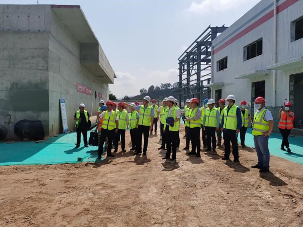 4月24日上午,考察团在中交一公院环境与景观规划设计院院长张博的陪同下前往中交一公院承建的铁岗—石岩水库水质保障工程(三期)项目工地进行考察。