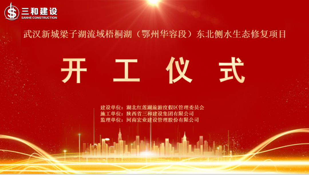 On September 29, as the whole nation celebrated the 76th anniversary of the founding of the People's Republic of China, the commencement ceremony was held for the Water Ecological Restoration Project on the Northeast Side of Wutong Lake in the Liangzi Lake Basin of Wuhan New City, constructed by Shaanxi Sanhe Construction Group Co., Ltd.